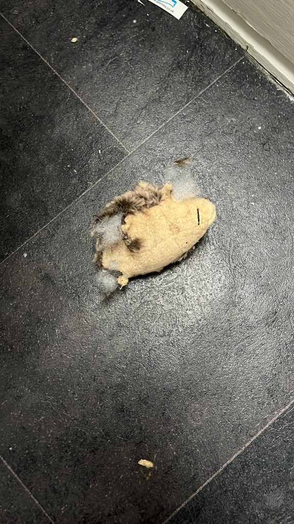Of course, the following day I noticed a slight change of positioning of the body, and to my horror, the hedgehog’s fluffy guts splain across the linoleum. What was a happy hedgehog only days before was now completely limbless and dead.
